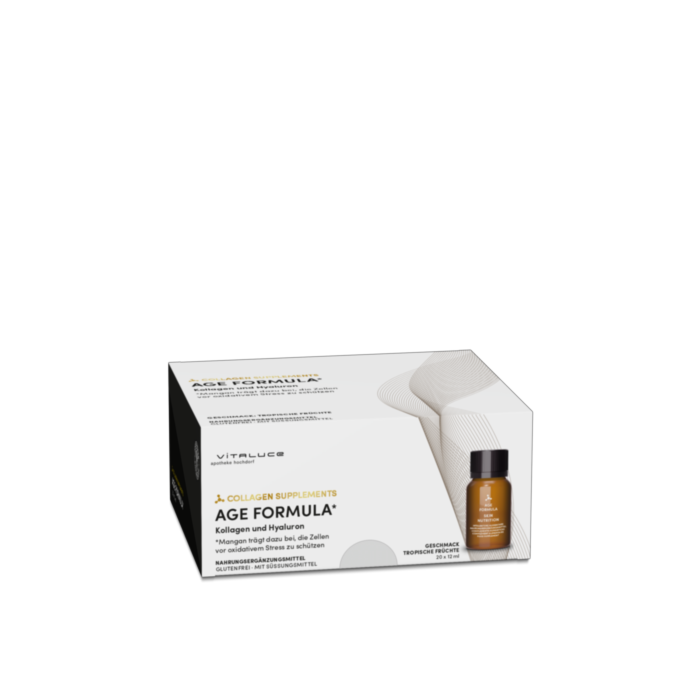 Wasser; Verisol® B (hydrolisiertes Rinderkollagen); Stabilisator: Xylit; Trehalose; Säureregulatoren: Weinsäure, Magnesiumchlorid; Hyaluronsäure; Aromen; Konservierungsstoffe: Natriumbenzoat, Kaliumsorbat; Mangangluconat, Süssstoff: Steviolglycoside..